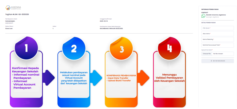 Setelah melakukan konfirmasi pembayaran UP & SPP, Panitia PPDB Sekolah Avicenna akan segera mengonfirmasi Proses Approval pada Status yang ada pada Dashboard Orang Tua.